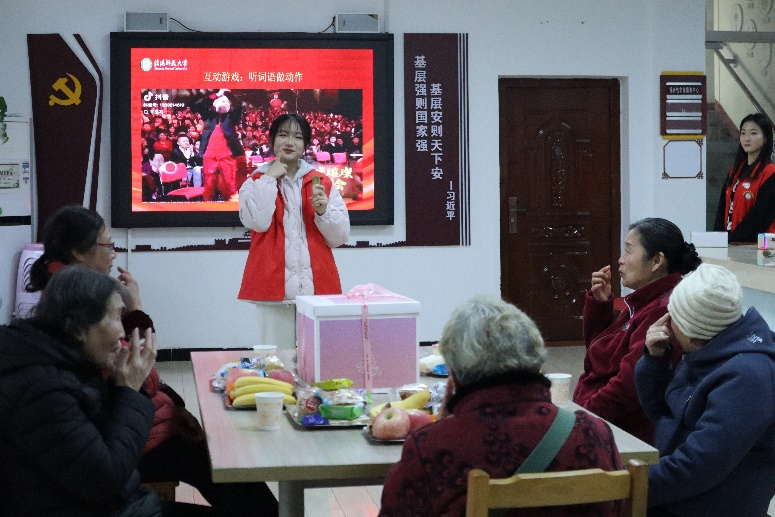 活动期间,志愿者深入社区与社区工作人员紧密合作,为老人精心选购生日蛋糕、水果、饼干等食物,并对参会老人实行一对一陪伴服务。活动现场温馨而欢乐,党员志愿者为老人倾情献上拍手舞、朗诵、个人独唱等表演。