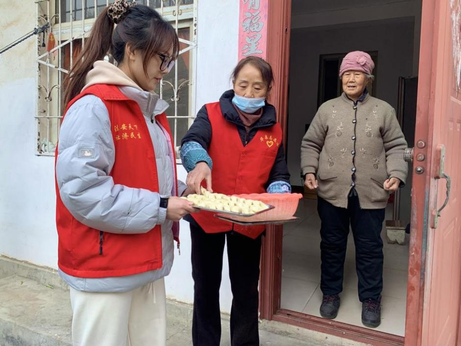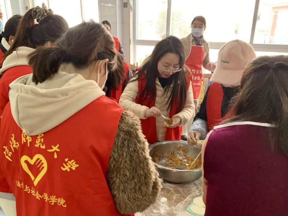 清晨,志愿者们早早来到活动现场,全身心投入到包饺子的准备工作中。大家分工明确,擀皮、拌馅、包饺子,现场气氛热烈而温馨,一双双巧手将满满的关怀包进了一个个饱满的饺子里。随后,研究生志愿者们在社区工作人员的陪同下,走访慰问了社区高龄老人和独居居民。志愿者们将刚包好的饺子送到老人手中,并送上真挚的冬至祝福。
