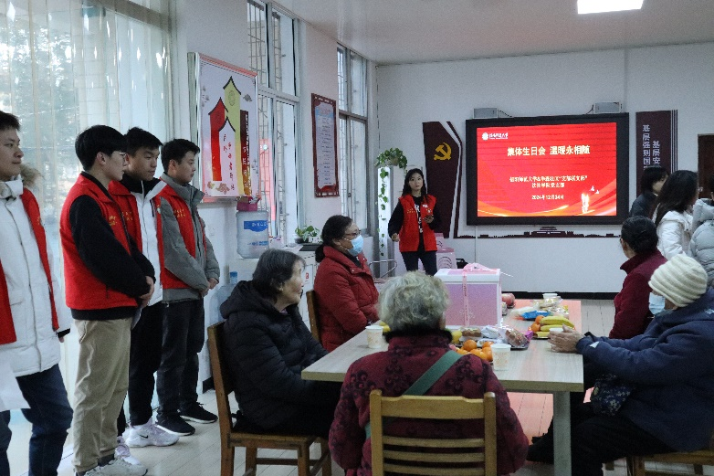 为践行志愿服务理念,发扬中华民族尊老爱老优良传统,12月24日,德赢vwin体育官网登录党员志愿者赴金牛山街道华森社区举办“集体生日会,温暖永相随”老人集体生日会,为社区老人送上关怀与祝福。