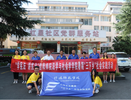 法社学院社会实践团成员在红星社区、军队离休干部第三休养所、军韵花园等社区居民发放学宪法宣传彩页,并结合身边的具体案例,以案释法,以法论事,进一步启发指导社区管理人员和群众深入学习思考理解宪法,做遵法、守法、护法、用法典范。
